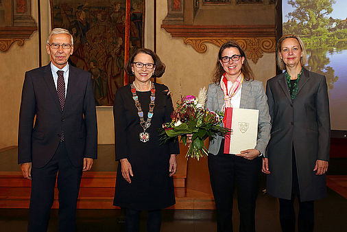 Die Atmosphäre war feierlich und freudig als Oberbürgermeisterin Gertrud Maltz-Schwarzfischer am Abend des 27. Oktober 2021 im Historischen Reichssaal des Alten Rathauses die Regensburger Preise für Frauen in Wissenschaft und Kunst verlieh. Neben Prof. Dr. Konstantina Papathanasiou, die sich an der Universität Regensburg habilitiert hatte, wurden Julia Unterhofer für ihre Abschlussarbeit an der Hochschule für katholische Kirchenmusik und Musikpädagogik Regensburg sowie Dr. Marianne Unterreitmeier für ihre kooperative Promotion an der Universität Erlangen-Nürnberg und der Ostbayerischen Technischen Hochschule Regensburg ausgezeichnet.