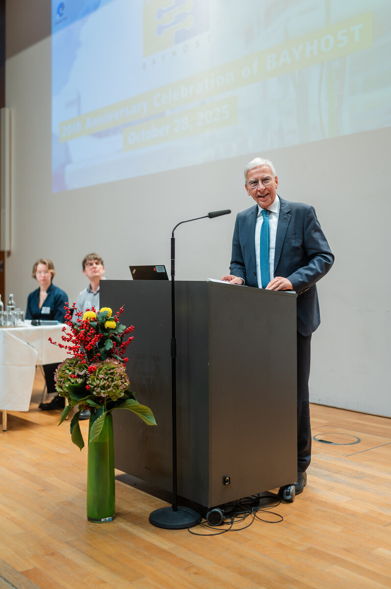 Die Sprecherinnen und Sprecher des Festakts zollten BAYHOST große Anerkennung für seine bisherige Arbeit. Der Gründer von BAYHOST, Prof. em. Dr. Dr. h.c. Walter Koschmal, ermutigte das Zentrum, „mutig kreativ und offen zu bleiben – auch unter sich wandelnden Rahmenbedingungen“.