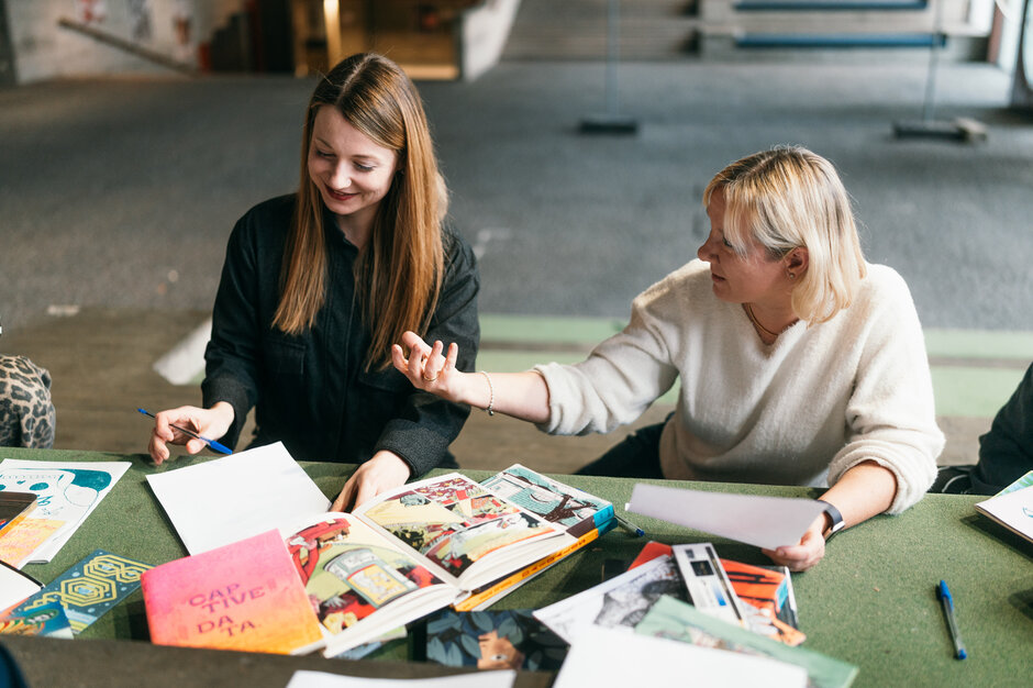 Foto: UR / Julia Dragan Professorin Dr. Miriam Banas (Fakultät für Medizin; Universitätsklinikum Regensburg, Abteilung für Nephrologie) und Dr. Laura Niebling (Medienwissenschaft, DIMAS) luden die Studierenden zu einem Seminar mit der mehrfach ausgezeichneten Comic-Zeichnerin Sophie Nicklas ein. Inhaltlich ging es um Nierenerkrankungen. Mithilfe neuer kooperativer Kommunikationswege soll die Prävention nicht zuletzt in Unternehmen intensiviert werden.