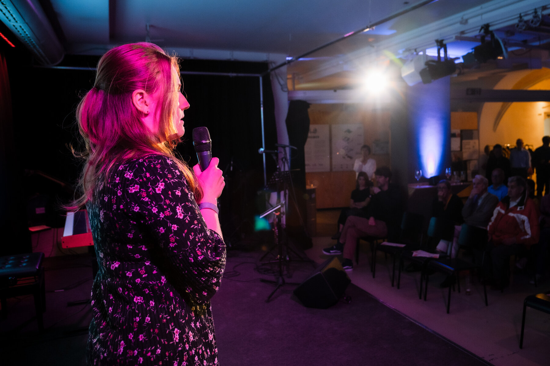 Prof. Dr. Ursula Regener (Neuere deutsche Literaturwissenschaft) sprach über Ian McEwans Werk Maschines like me, das Anfang der 1980er spielt. Das Buch erzähle die KI aus einer Retrospektive, das heiße, die wissenschaftlich virulenten Probleme aus dem Jahr 2019 seien hier erledigt.
