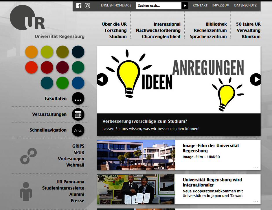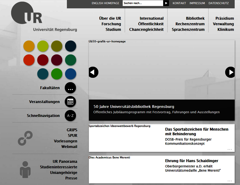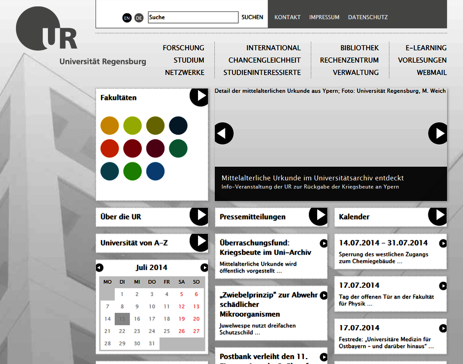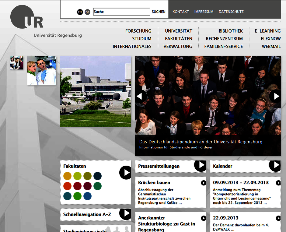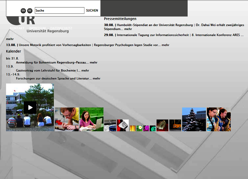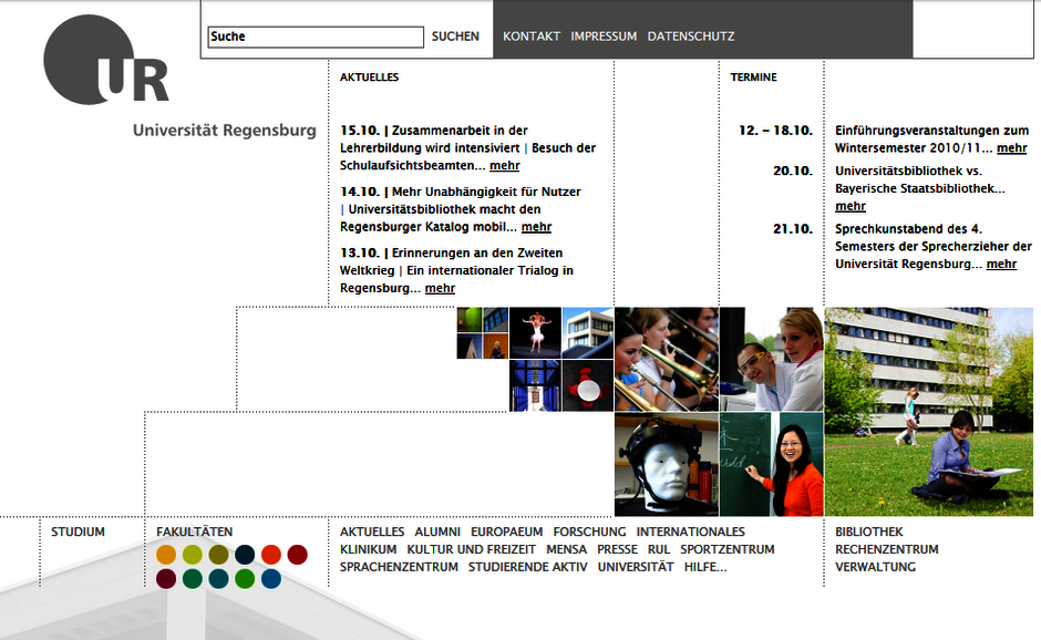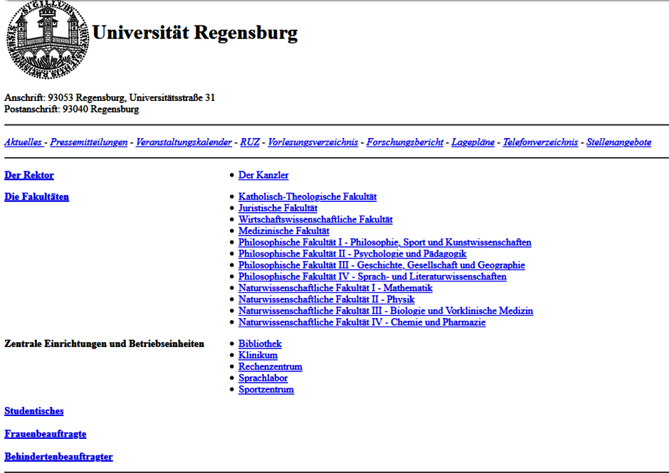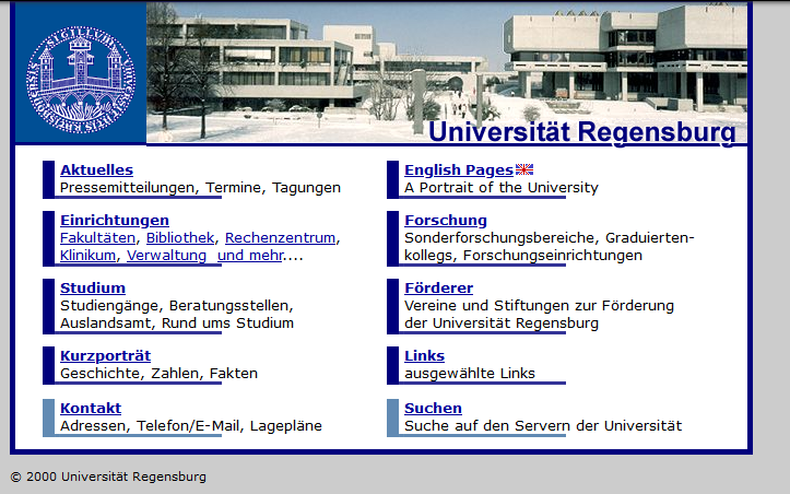 Der Webauftritt der Universität bestand zunächst aus verschiedenen, mehr oder weniger komplexen HTML-Seiten.