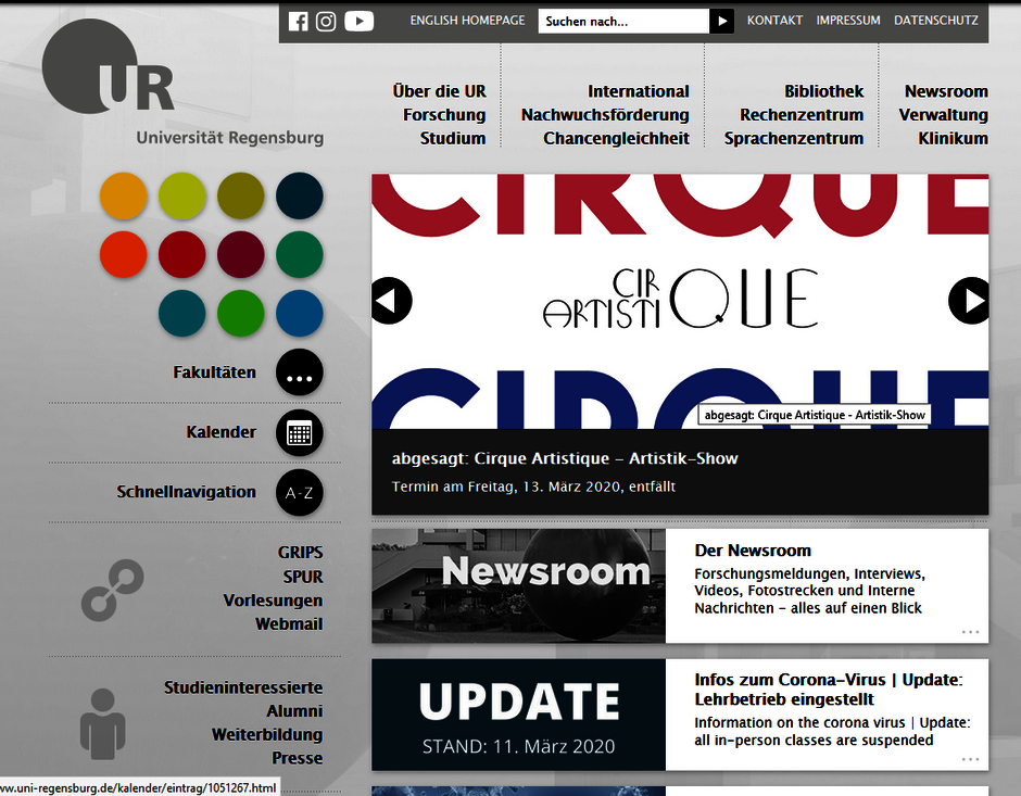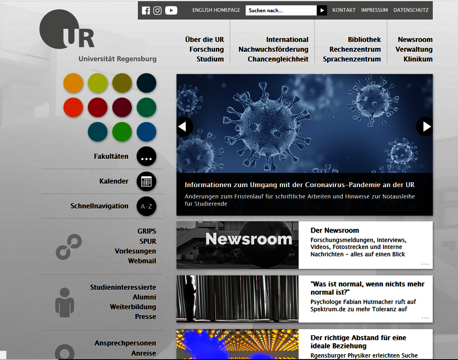 Auch die Corona-Pandemie hat Einfluss auf den Webauftritt: Seit Frühjahr 2020 dominiert des Corona-Virus das Geschehen.