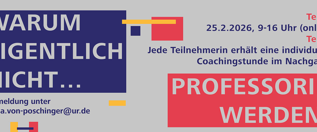 Anmeldung | Bitte melden Sie sich bei Interesse bei der Koordinationsstelle Chancengleichheit (katja.von-poschinger(at)ur.de(öffnet Ihr E-Mail-Programm) (externer Link, öffnet neues Fenster))