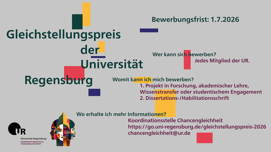 Bewerben Sie sich jetzt bis zum 01. Juli 2026 für den Gleichstellungspreis der Universität Regensburg!