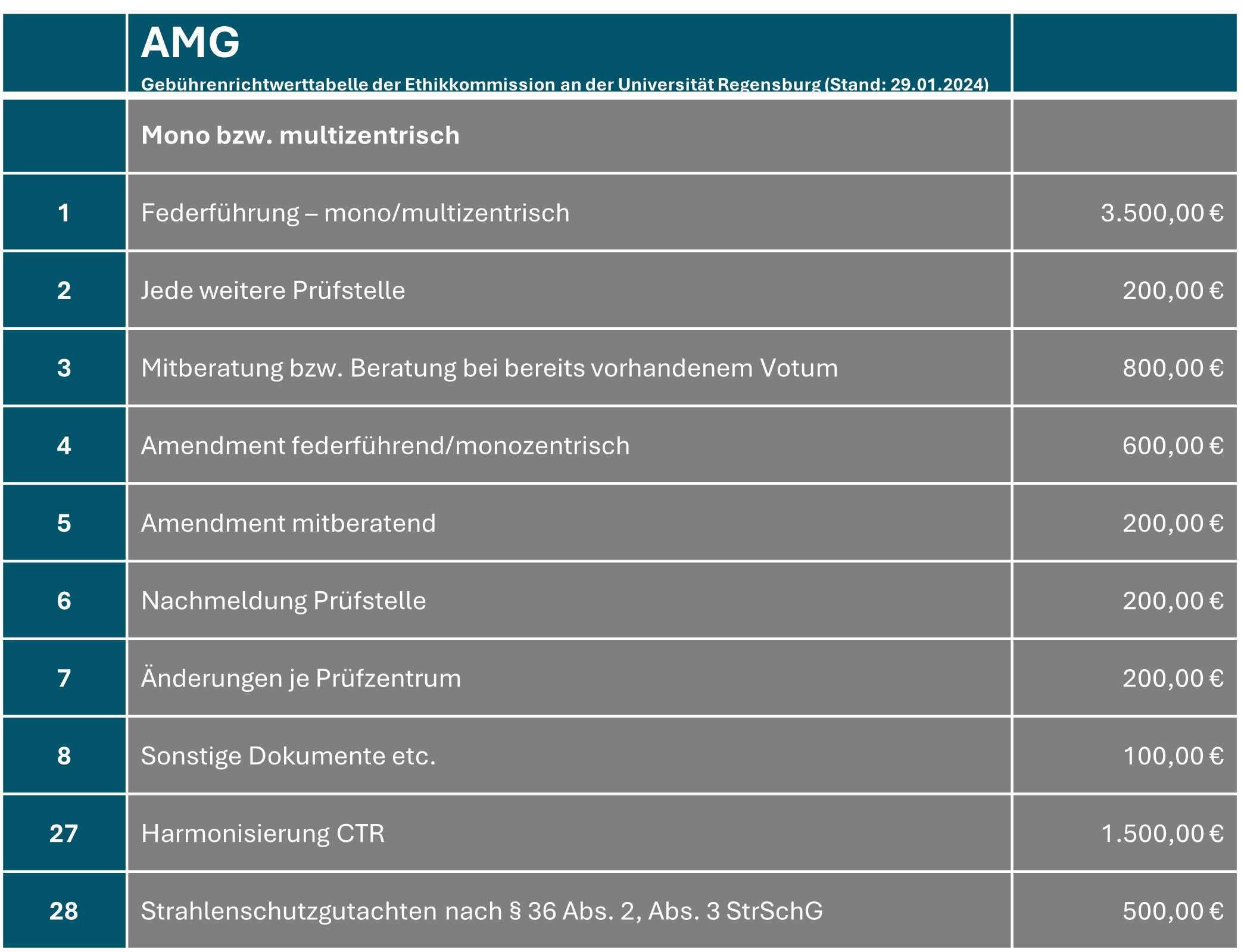 AMG/CTR-Studien sind über das Portal CTIS (externer Link, öffnet neues Fenster) einzureichen. Die Gebührenübersicht für AMG/CTR-Studien finden Sie hier (öffnet neues Fenster).
