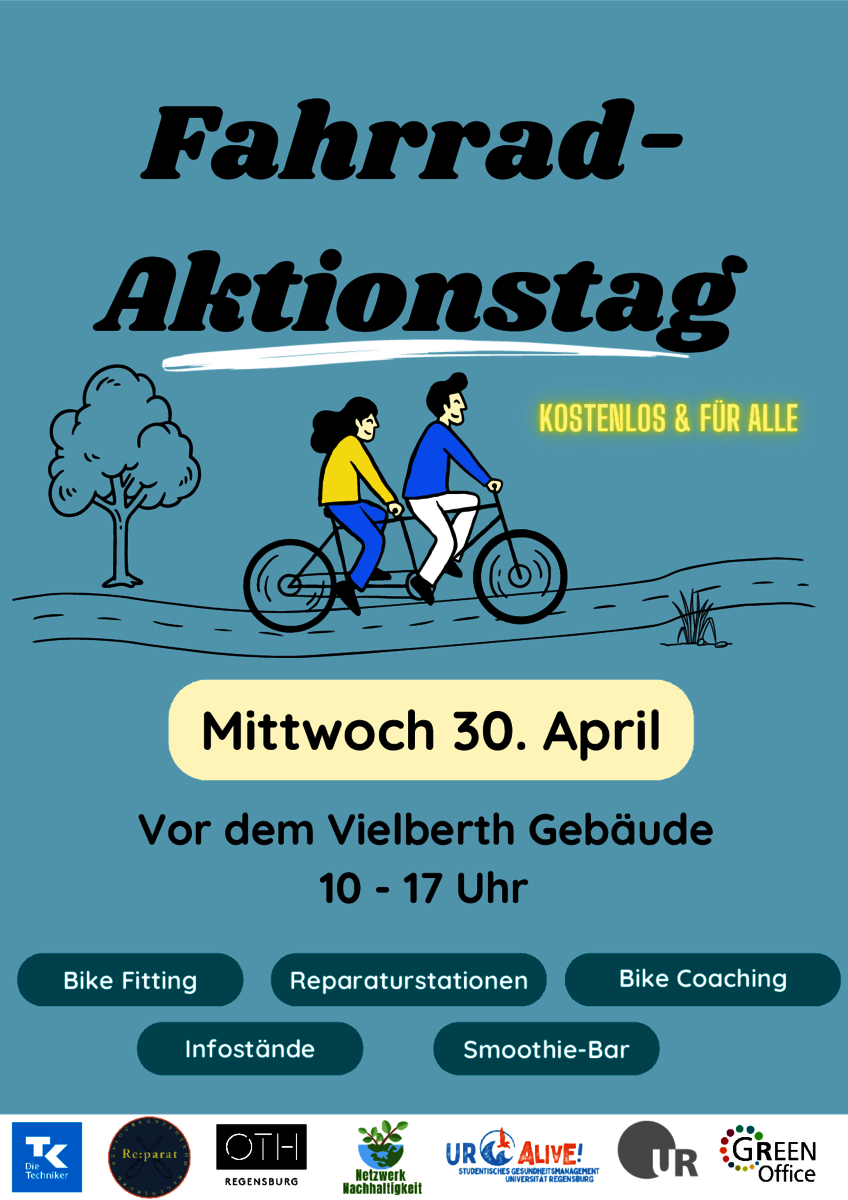 Was ist das Ziel? Ziel des Fahrrad-Aktionstags ist es, die vielfältigen Bewegungsangebote des studentischen Gesundheitsmanagements UR alive (externer Link, öffnet neues Fenster) vorzustellen und über das Thema Fahrradmobilität am Campus ins Gespräch zu kommen.