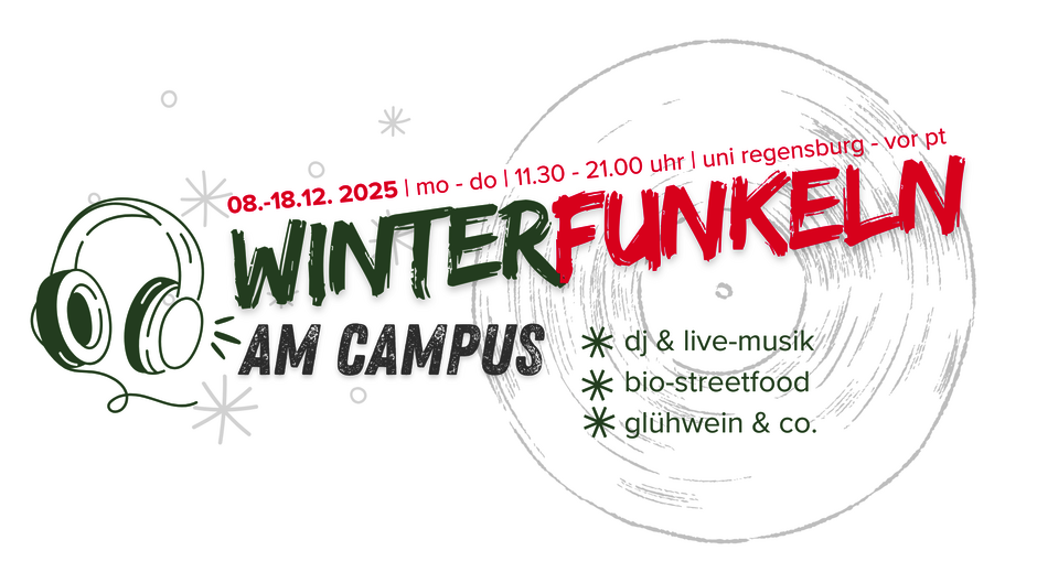 Den Auftakt gestalten die Projektverantwortlichen (der Bio Donaumarkt Regensburg, das Green Office und AStA Nachhaltigkeit) gemeinsam und haben sich dafür den Namen „Winterfunkeln“ überlegt. Der Auftakt beginnt am Montag, 8. Dezember 2025, ab 14.00 Uhr mit einem spirituellen Impuls. Von 14 - 18 Uhr wird es gemeinsam mit vielen studentischen Gruppen aus dem sozialen Bereich Infostände geben.