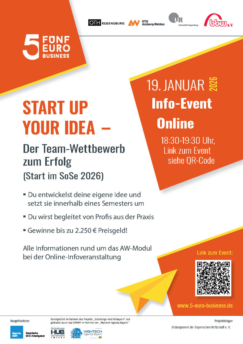 Wir unterstützen Forschende und Studierende der Universität Regensburg auf ihrem Weg in die Gründung. Durch praxisnahe Workshops, kreative Wettbewerbe und inspirierende Veranstaltungen bereiten wir innovative Ideen auf den Sprung in die unternehmerische Zukunft vor.