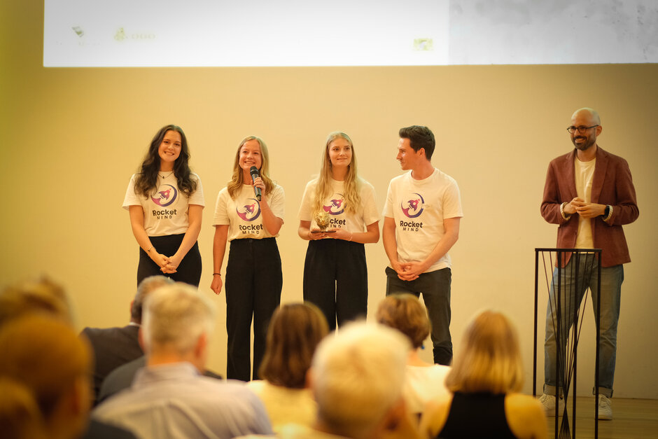 Das Team RocketMIND, mit UR-Alumni an Bord, überzeugte mit einem Konzept zur psychischen Prävention bei Kindern und gewann per Publikumsvoting den ersten Platz. Auch die weiteren Teams – unter anderem BeAFox, und OnlyFootball – beeindruckten mit kreativen Lösungen und unternehmerischem Potenzial.
