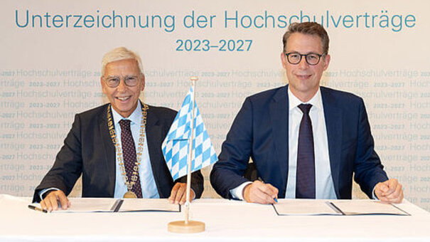 Auf Basis der Rahmenvereinbarung 2023 - 2027 sind von allen Hochschulen individuelle Hochschulverträge mit dem Bayerischen Staatsministerium für Wissenschaft und Kunst abgeschlossen worden, die am 21. September 2023 feierlich unterzeichnet wurden. In den Hochschulverträgen werden die in der Rahmenvereinbarung verbindlich vereinbarten zehn Handlungsfelder weiter konkretisiert und hochschulspezifische Schwerpunkte und Zielsetzungen vereinbart.