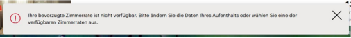 Bitte beachten Sie: Bei sehr knapper Vorlaufzeit kann es sein, dass keine Zimmer zu vergünstigten Konditionen verfügbar sind. In diesem Fall wird Ihnen ein entsprechender Hinweis angezeigt: