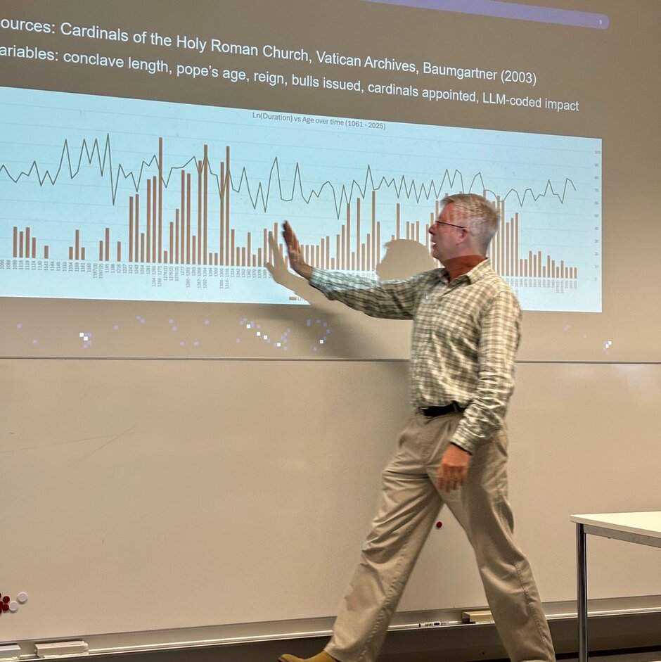 - ein Lunch-Seminar am 22. Oktober, 12:00 Uhr, H 26, mit dem Vortrag From Medieval to Modern Mechanisms: Insights from Papal Conclaves into Internal Stability and Conflict Strategies