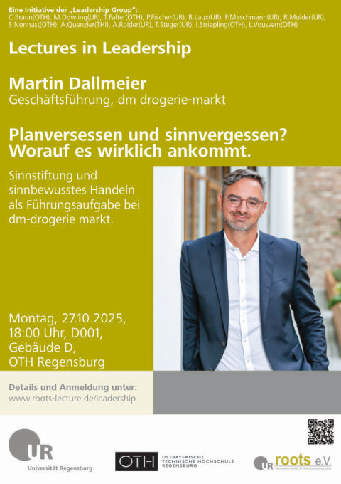 Wir freuen uns, Herrn Martin Dallmeier, Geschäftsführer Ressort Finanzen + Controlling und Stellvertretender Vorsitzender der Geschäftsführung (dm drogerie-markt), am Montag, den 27. Oktober 2025 um 18.00 Uhr zur nächsten Veranstaltung in der Reihe "Lectures in Leadership" begrüßen zu dürfen.