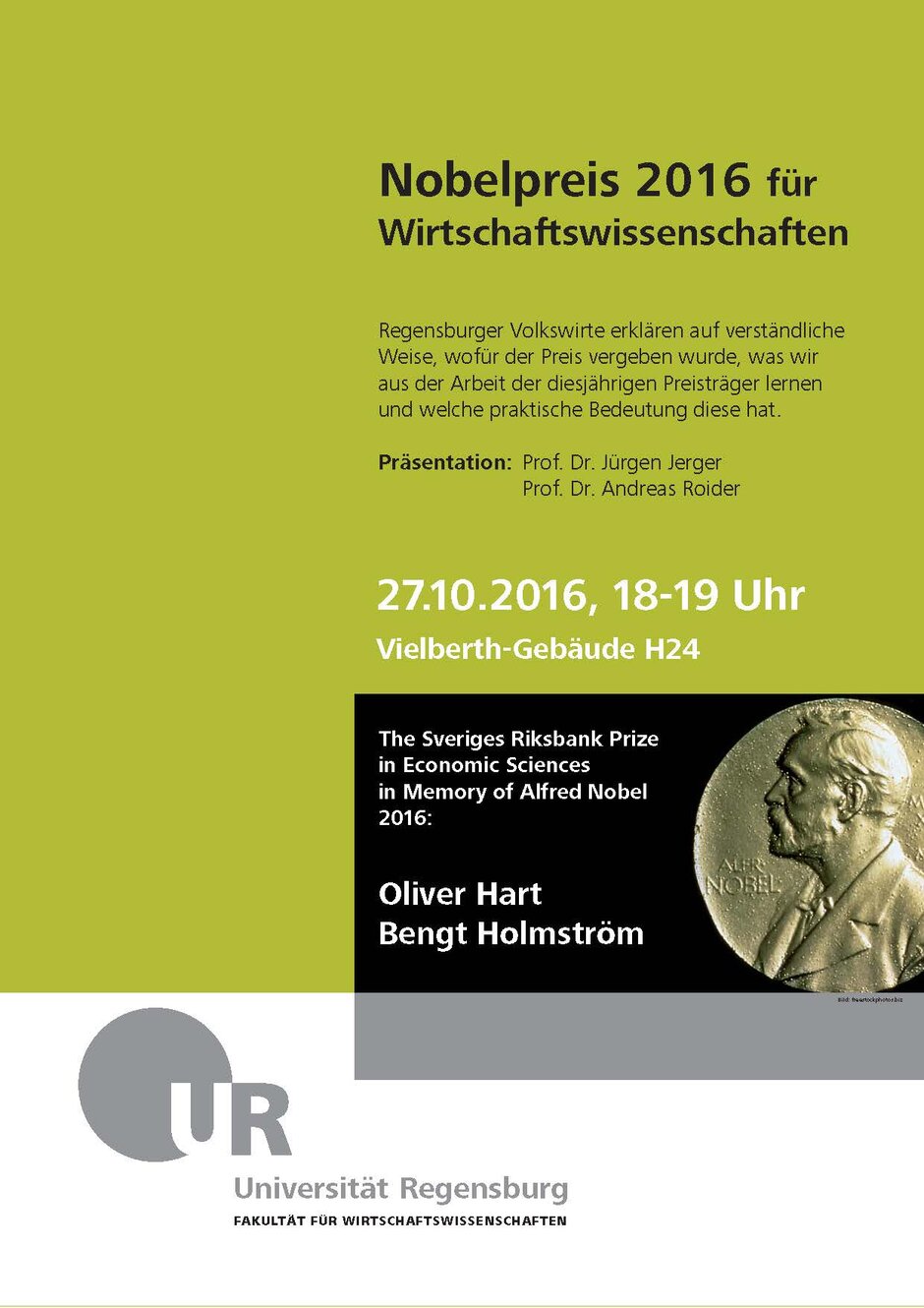 In dieser Veranstaltung erklären Regensburger Volkswirte, wofür der Preis vergeben wurde, was wir aus der Arbeit der diesjährigen Preisträger lernen und welche wirtschaftspolitische Bedeutung das hat.