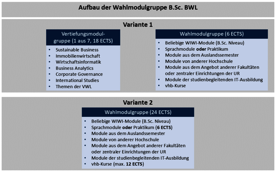Die Wahlmodulgruppe im B.Sc. BWL umfasst entweder 6 oder 24 ECTS.