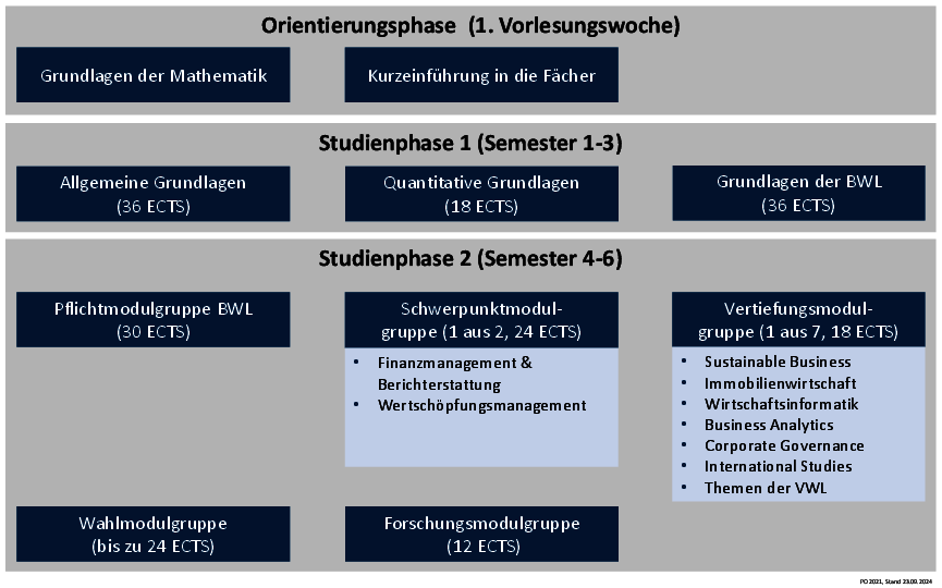 - In der ersten Studienphase erlernen Sie die Grundlagen der Betriebswirtschaftslehre.
