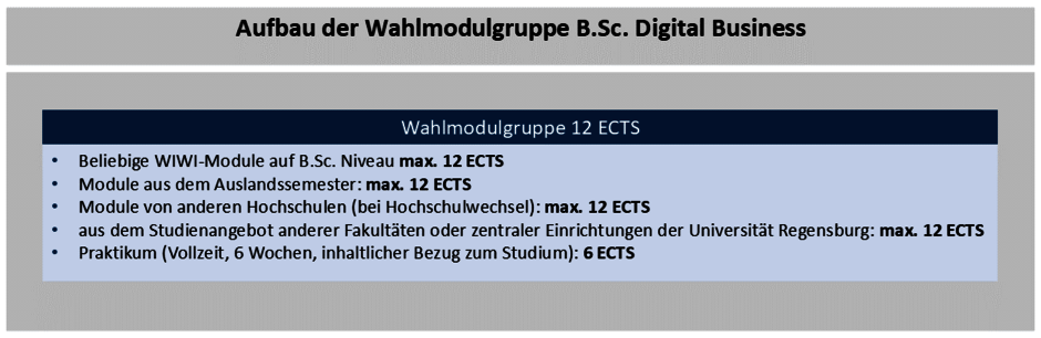 - Ersetzen eines Moduls im B.Sc. Digital Business. Dies erfordert die Bescheinigung der Äquivalenz durch den Modulverantwortlichen.
